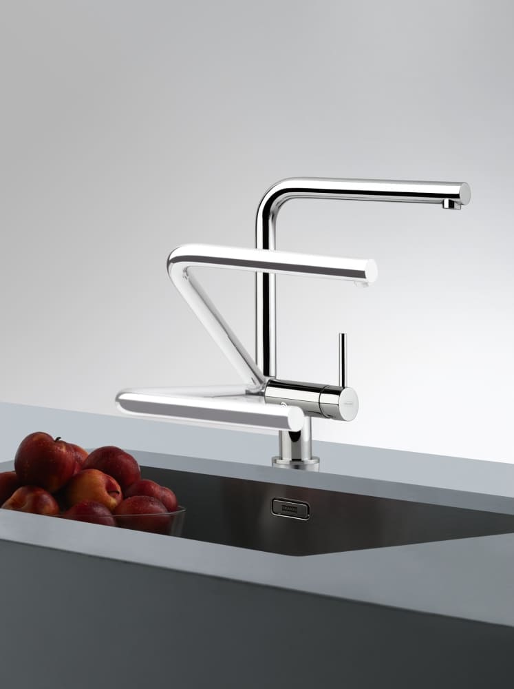 Благодаря особой конструкции вы можете также направить воду из раковины в ванну или из одной чаши мойки в другую одним поворотом крана в нужную сторону. Дополнительная деталь, которая повышает комфорт использования, — аэратор. Он делает поток воды мягче, насыщая его кислородом, таким образом дополнительно уменьшая ее расход: объем струи увеличивается за счет воздуха, а не за счет повышения напора из водопровода.