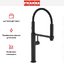 Выдвижной излив в кухонном смесителе — это гибкая трубка из резины в металлической оплетке, расположенная внутри основного излива. Для того, чтобы воспользоваться гибким изливом — например, наполнить высокую посуду, — достаточно включить воду и потянуть за головку, находящуюся на конце трубки.