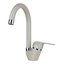 По высоте все смесители можно разделить на три группы: низкие, средние и высокие. Низкие обычно имеют один вентиль, а средние и высокие — по два. Высота низких смесителей составляет около 10-12 см, их выбирают для небольшой мойки глубиной около 120-140 мм и чаще устанавливают в ванной, чем в кухне. Кухонные модели могут дополняться выдвижными шлангами и поворотным изливом. Высота средних смесителей варьируется в пределах от 15 до 25 см: за стандартный принят размер 22 см. Они могут крепиться к мойке или к стене и подойдут для раковин глубиной около 170 мм. Для больших раковин глубиной более 20 см подойдут высокие изливы — от 25 до 50 см: они наиболее удобны, но требуют больше места.