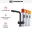 Монтаж горизонтальный — установка на ровную площадку у мойки проходит без сложностей. Тип подводки гибкий, что удобно при разводке коммуникаций, а в комплект входят гибкие присоединительные шланги для быстрого подключения. Черный цвет смесителя легко комбинируется с темными раковинами и создает выразительный контраст со светлыми столешницами.