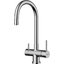 Рычаг для включения фильтрованной воды применяется в современных комбинированных смесителях, где из одного и того же излива подается и водопроводная, и питьевая вода. Такие смесители типа «два в одном» отличаются от обычных тем, что имеют не два подключения, а три, где третье соединяет смеситель с фильтром. Очищенная вода подается по изолированной трубке, проходящей внутри излива. Для удаления накипи, солей металлов, микроорганизмов и прочих вредных примесей могут применяться различные типы фильтров. Проточные фильтры устанавливаются под мойкой и включают несколько картриджей, которые необходимо менять по мере использования. С их помощью можно избавиться от таких примесей, как железо, хлор и многие другие. Устройства с системой обратного осмоса оснащаются диффузором, включающим картриджи для предварительной очистки и осмотическую мембрану, задерживающую практически все вредные примеси.