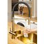 Поворотный излив означает, что вы сможете направить поток воды не только по центру, но и в сторону — и даже с раковины в ванну, если излив достаточно длинный. Угол поворота может быть разным, в зависимости от того получится сдвинуть кран на 180 или 360 градусов. С таким изливом проще мыть посуду и продукты, крупные предметы.
