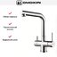 Для подачи чистой воды смесители могут оснащаться единственным рычагом, при помощи которого производится переключение на фильтр. Этот же рычаг регулирует напор и температуру водопроводной воды. Чаще на изливе имеются два рычага, один из которых отвечает только за включение фильтрованной воды.