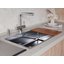 Специальная насадка позволяет выдвинуть излив как маленький шланг и направить струю в слишком высокую кастрюлю, которая не помещается под стационарным краном, на овощи в раковине, на загрязнения в неудобных уголках мойки, которые нужно удалить и т.д. Благодаря особой конструкции вы можете также направить воду из раковины в ванну или из одной чаши мойки в другую одним поворотом крана в нужную сторону. Дополнительная деталь, которая повышает комфорт использования, — аэратор. Он делает поток воды мягче, насыщая его кислородом, таким образом дополнительно уменьшая ее расход: объем струи увеличивается за счет воздуха, а не за счет повышения напора из водопровода. К этой модели можно подключить фильтр для питьевой воды.