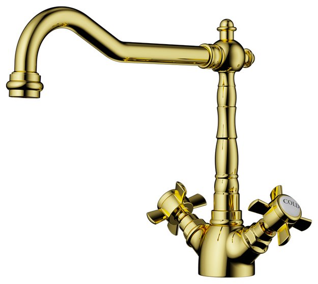 - двурычажный — потоки холодной и горячей воды в кран подаются отдельно, чтобы настроить температуру, нужно использовать два вентиля.