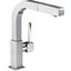 Выдвижной излив в кухонном смесителе — это гибкая трубка из резины в металлической оплетке, расположенная внутри основного излива. Для того, чтобы воспользоваться гибким изливом — например, наполнить высокую посуду, — достаточно включить воду и потянуть за головку, находящуюся на конце трубки.