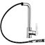 Выдвижной излив в кухонном смесителе — это гибкая трубка из резины в металлической оплетке, расположенная внутри основного излива. Для того, чтобы воспользоваться гибким изливом — например, наполнить высокую посуду, — достаточно включить воду и потянуть за головку, находящуюся на конце трубки.