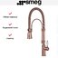 Smeg MIDR7RA-2 — стильный смеситель высотой 55 см с медным покрытием, изготовленным инновационным методом вакуумного напыления. Модель гармонирует с интерьерами в стиле ретро, классическом или кантри. Выдвижной излив позволяет использовать модель на мойках с несколькими чашами. Аэратор насыщает струю воды пузырьками воздуха и тем самым уменьшает брызги и заглушает звук удара струи и дно чаши. Гибкая нейлоновая подводка значительно облегчает установку.