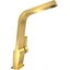 Модель выглядит ярко и выразительно: вытянутый силуэт, четкие пропорции и плавные линии в стилистике Icon. Золотого цвета покрытие подчеркивает геометрию корпуса и объединяет рычаг и излив в единую композицию. Общая форма лаконична, без лишних деталей, поэтому смеситель легко вписывается как в спокойные интерьеры, так и в более контрастные решения.