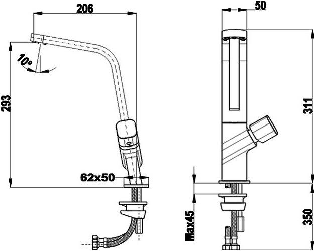 Высота излива — один из важнейших параметров, которые необходимо учитывать при выборе кухонного смесителя. Высотой называется расстояние от поверхности, на которой установлен смеситель, до его носика, то есть это, по сути, длина струи воды. Подбирать модель по высоте следует так, чтобы в раковину без труда помещались любые емкости, которыми вы пользуетесь, включая большие кастрюли и высокие вазы, а вода при ударе о дно раковины не разбрызгивалась во все стороны. Чем больше высота излива, тем глубже должна быть раковина.