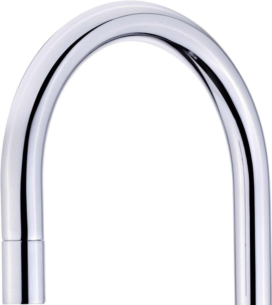 Высота излива — один из важнейших параметров, которые необходимо учитывать при выборе кухонного смесителя. Высотой называется расстояние от поверхности, на которой установлен смеситель, до его носика, то есть это, по сути, длина струи воды. Подбирать модель по высоте следует так, чтобы в раковину без труда помещались любые емкости, которыми вы пользуетесь, включая большие кастрюли и высокие вазы, а вода при ударе о дно раковины не разбрызгивалась во все стороны. Чем больше высота излива, тем глубже должна быть раковина.