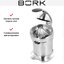 Соковыжималка BORK Z800 подходит для получения сока из всех видов цитрусовых, а также плодов граната. Комбинация свойств механического пресса и электрического привода позволяет приготавливать напиток без особых усилий. Эта стационарная модель станет статусным дополнением интерьера. Компактное устройство высотой 45 см в литом металлическом корпусе выглядит очень стильно. Его дизайн был удостоен одной из самых авторитетных международных премий RedDot Design Award. Кнопка включения устройства расположена на корпусе. Универсальная конструкция конуса для отжима позволяет отжать сок до последней капли. Сок стекает в чашу и проходит через два стальных фильтра для мякоти, а затем по желобу попадает в стакан. Для отключения устройства достаточно поднять рычаг. Конструкция легко разбирается. Все съемные детали можно промыть под струей теплой воды с моющим средством.