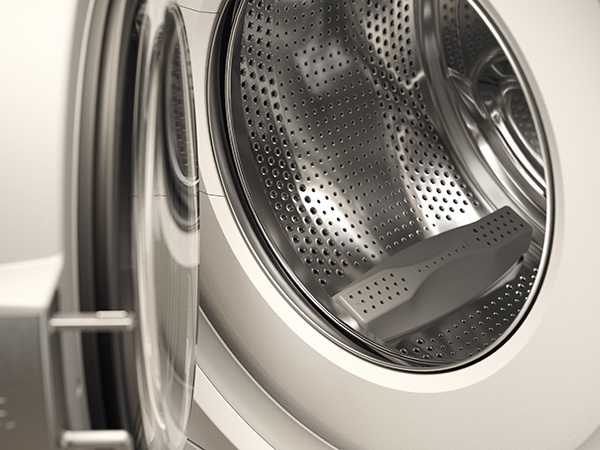 Барабан обычно изготавливается из тонкой нержавеющей стали, отверстия на боковой поверхности могут располагаться по-разному и иметь разную форму. Поверхность барабана в большинстве моделей не является гладкой: на ней находятся выпуклости и впадины для лучшего скольжения белья.