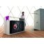 Модели с вертикальной загрузкой отличает надежное крепление барабана на двух валах. Еще одно их отличие — особая конструкция люка: на нем имеется отверстие, закрывающееся на замок. Чтобы получить доступ к барабану, необходимо открыт его и отодвинуть створку.