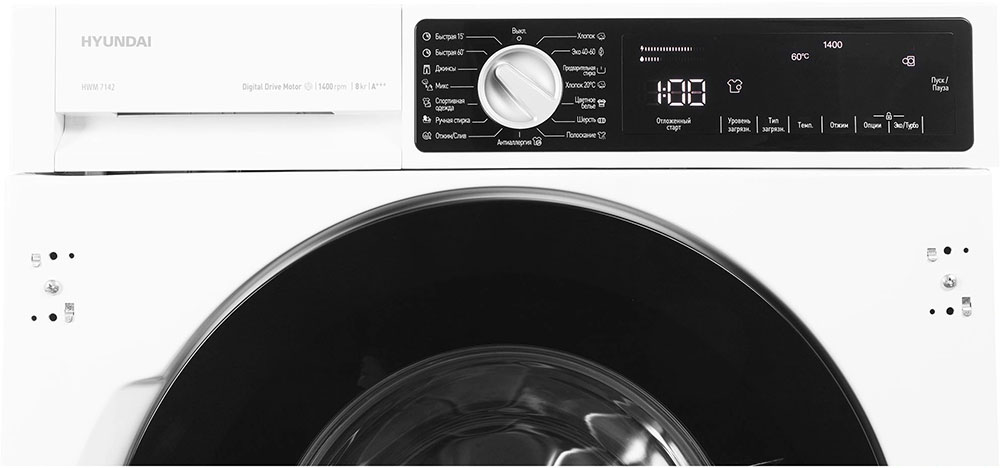 Стиральная машина Хендай HWM 7142 принадлежит к немногочисленному сегменту встраиваемой техники — для ее установки необходимо тщательно выбрать заранее нишу в мебельном гарнитуре. Благодаря классической фронтальной загрузке она привычна и удобна даже для тех, кто не очень разбирается в технике. За счет небольшой глубины данную модель предпочитают владельцы небольших квартир, студий. Вместительность барабана средняя, поэтому ее хватит и для одиночек, и для семей с детьми. Максимальная загрузка: 8 кг.