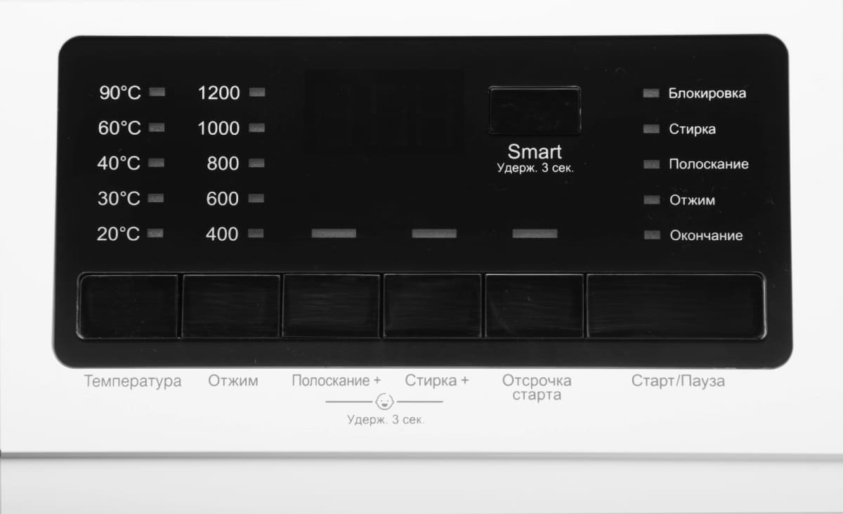 Вы можете отложить запуск, если хотите сэкономить на тарифах и включить машинку ночью, либо если планируете развесить белье сразу после возвращения работы и не ждать, пока закончится цикл. На панели управления отображаются разнообразные индикаторы, чтобы было проще следить за процессом, например: хода программы, температуры стирки, скорости отжима, блокировки от детей, выбранной программы, отсрочки старта. Скорость отжима достигает 1200 оборотов в минуту.