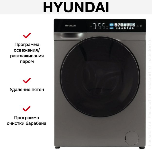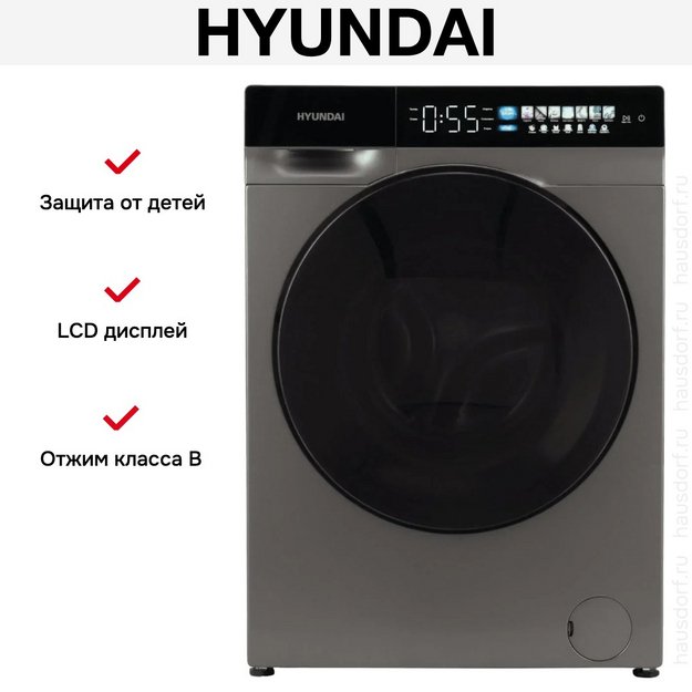 Стиральная машина Хендай WFE9230 темно-серый выпущена в стандартной конфигурации — устанавливается отдельно, поэтому рекомендуем заранее выделить для нее место в квартире. Благодаря классической фронтальной загрузке она привычна и удобна даже для тех, кто не очень разбирается в технике. В барабан помещается большое количество белья, что подойдет большим семьям или тем, кто часто стирает объемные вещи — постельное белье, верхнюю одежду. Максимальная загрузка: 10 кг.