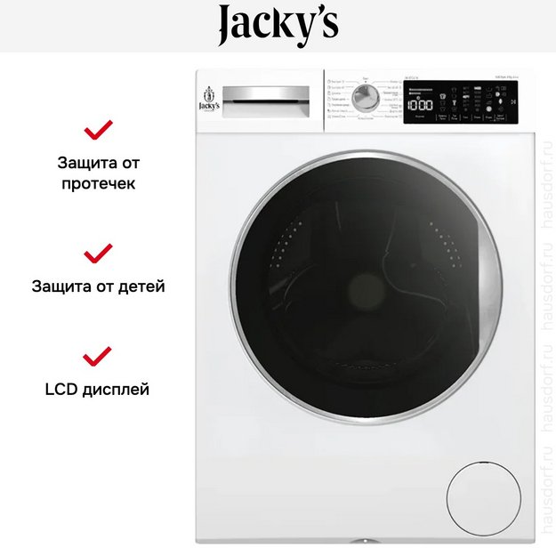 Стиральная машина Jacky’s JW 8TC41 имеет 15 разнообразных программ. Классическая конфигурация с фронтальной загрузкой и белый цвет корпуса делают модель универсальной. Она рассчитана на стандартные размеры ванной комнаты или кухни, загрузка составляет 8 кг — что подойдет семье из нескольких человек.