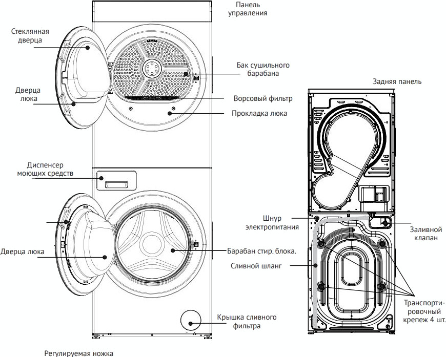 Ножки для регулировки высоты в стиральной машине позволяют установить устройство максимально ровно и устойчиво — таким образом, чтобы шум и вибрация при его работе были минимальны. Повышенная вибрация отрицательно сказывается на работоспособности прибора, так как его детали — прежде всего барабан — при неправильной установке могут соприкасаться с корпусом и из-за этого выходить из строя.