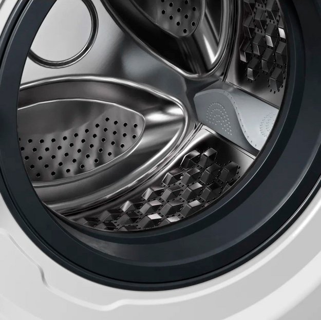 Барабан большого размера имеет целый ряд других преимуществ. Большие машины обычно оснащаются более мощным двигателем, способным развивать высокую скорость вращения. Следовательно, будет увеличиваться и центробежная сила, белье будет интенсивнее соприкасаться со стенками барабана, что ведет к улучшению качества стирки.