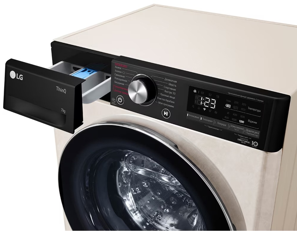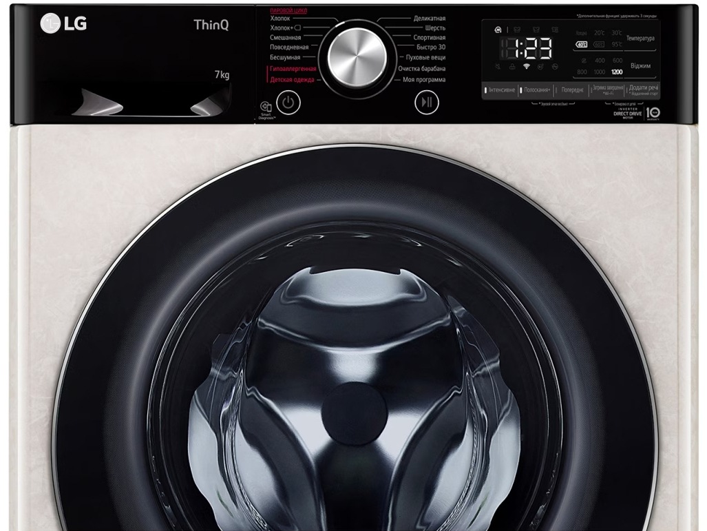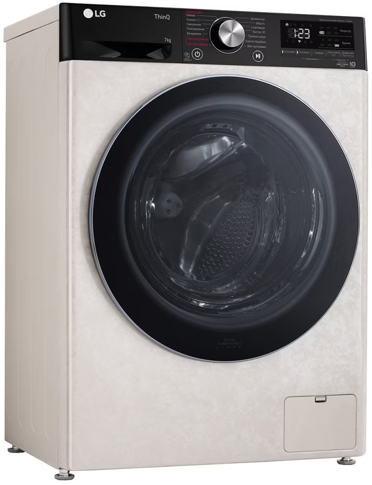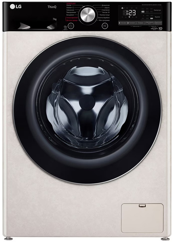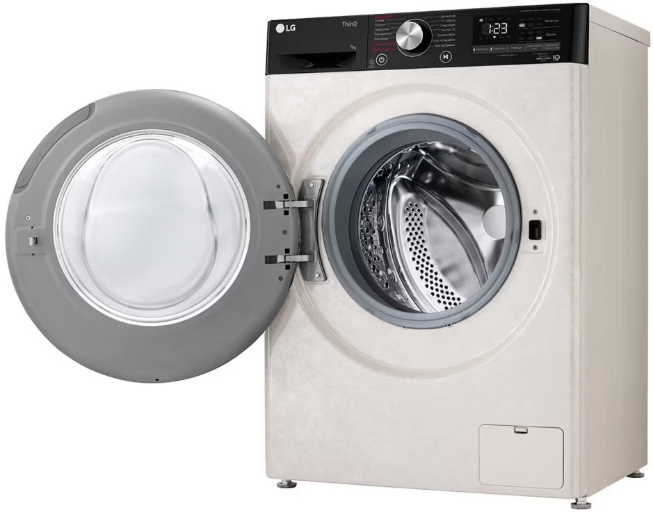 Цвет этой стиральной машинки — бежевый. Мотор: Инверторный. Благодаря ему машина работает тише, потребляет меньше электроэнергии, сохраняя при этом необходимую мощность.