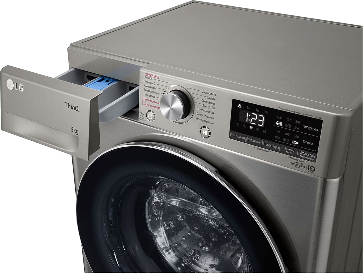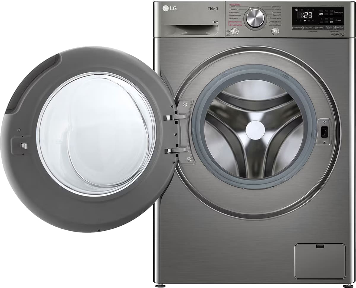 Цвет этой стиральной машинки — серебристый. Мотор: Инверторный. Благодаря ему машина работает тише, потребляет меньше электроэнергии, сохраняя при этом необходимую мощность.