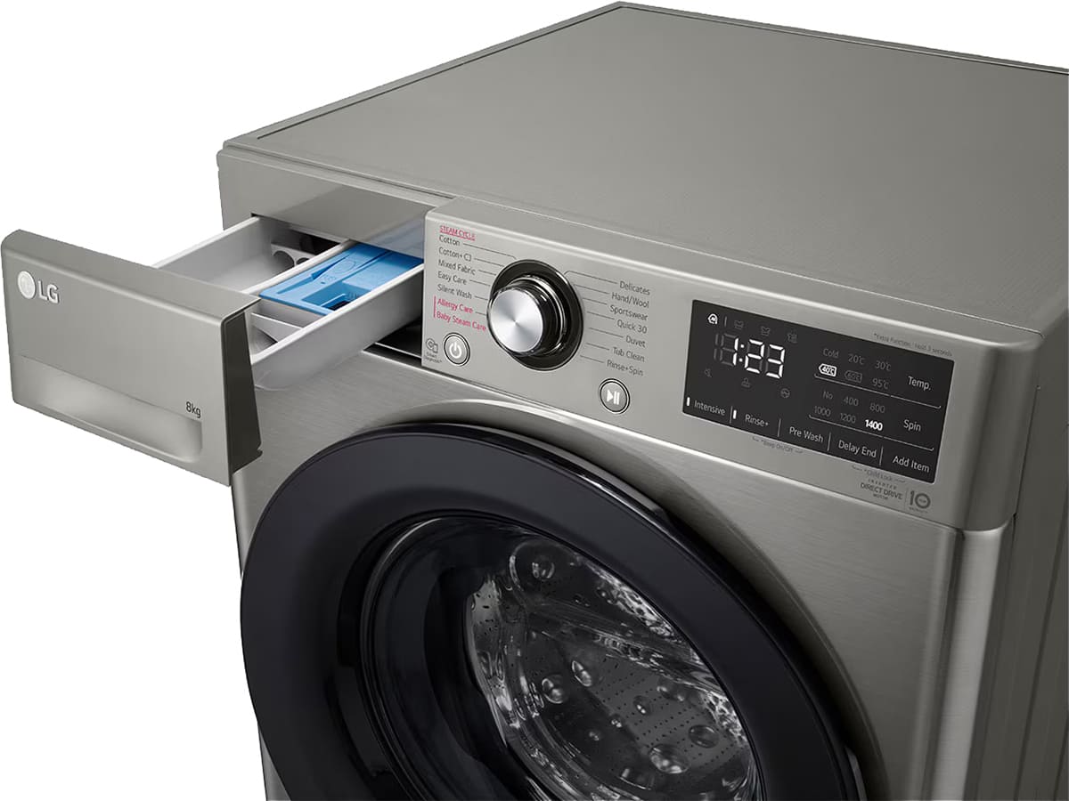 Стиральная машина Лджи F4R3TYG6P выпущена в стандартной конфигурации — устанавливается отдельно, поэтому рекомендуем заранее выделить для нее место в квартире. Благодаря классической фронтальной загрузке она привычна и удобна даже для тех, кто не очень разбирается в технике. Вместительность барабана средняя, поэтому ее хватит и для одиночек, и для семей с детьми. Максимальная загрузка: 8 кг.