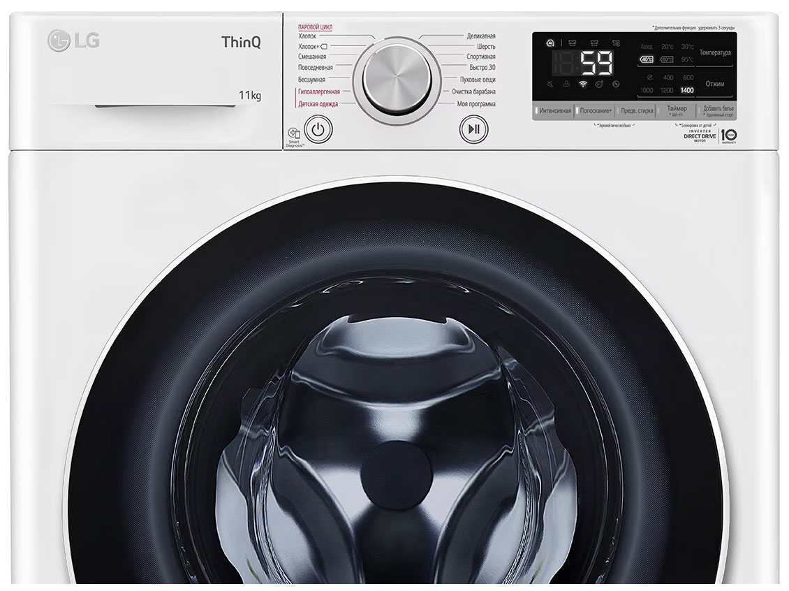 Стиральная машина Лджи TW4V5ES0W выпущена в стандартной конфигурации — устанавливается отдельно, поэтому рекомендуем заранее выделить для нее место в квартире. Благодаря классической фронтальной загрузке она привычна и удобна даже для тех, кто не очень разбирается в технике. В барабан помещается большое количество белья, что подойдет большим семьям или тем, кто часто стирает объемные вещи — постельное белье, верхнюю одежду. Максимальная загрузка: 11 кг.