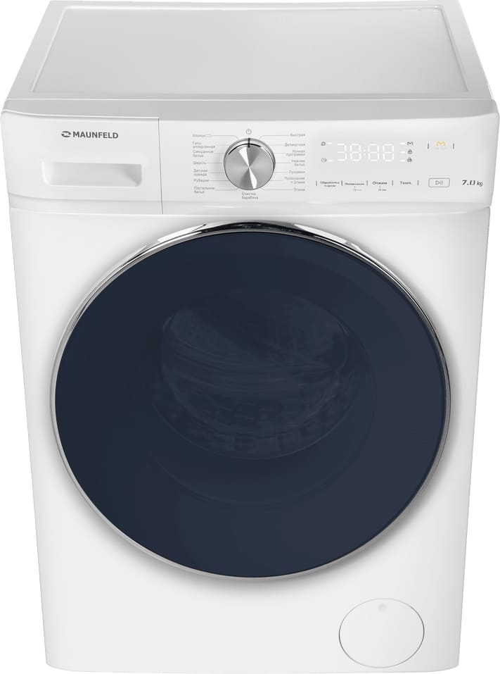 Стиральная машина Маунфилд MFWM127IWH053 выпущена в стандартной конфигурации — устанавливается отдельно, поэтому рекомендуем заранее выделить для нее место в квартире. Благодаря классической фронтальной загрузке она привычна и удобна даже для тех, кто не очень разбирается в технике. За счет небольшой глубины данную модель предпочитают владельцы небольших квартир, студий. Вместительность барабана средняя, поэтому ее хватит и для одиночек, и для семей с детьми. Максимальная загрузка: 7 кг.