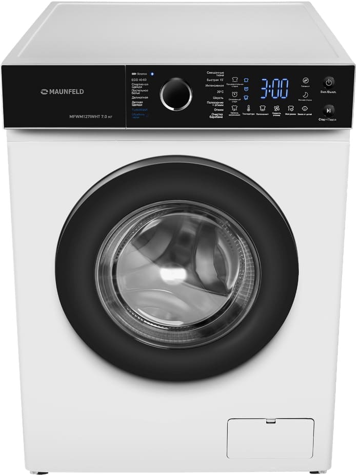 Стиральная машина Маунфилд MFWM127IWHT выпущена в стандартной конфигурации — устанавливается отдельно, поэтому рекомендуем заранее выделить для нее место в квартире. Благодаря классической фронтальной загрузке она привычна и удобна даже для тех, кто не очень разбирается в технике. За счет небольшой глубины данную модель предпочитают владельцы небольших квартир, студий. Вместительность барабана средняя, поэтому ее хватит и для одиночек, и для семей с детьми. Максимальная загрузка: 7 кг.