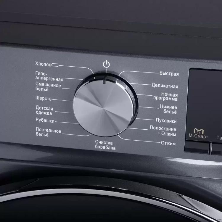 Электронное управление удобно и понятно. Для выбора программ используются кнопки, поворотный программатор. Количество режимов для стирки разных типов белья: 15.