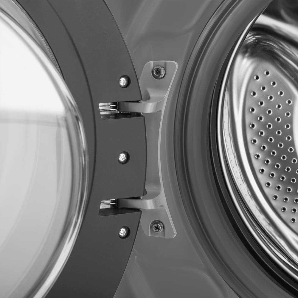 Еще одно преимущество фронтальных машин — прозрачное стекло в дверце, позволяющее визуально контролировать процесс стирки. Безопасность использования гарантирует блокировка дверцы после запуска программы стирки.