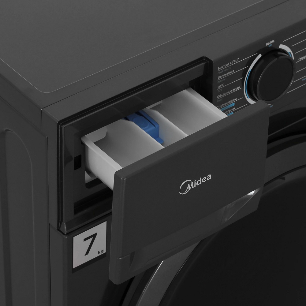 Стиральная машина Мидеа MF01712BS40/T выпущена в стандартной конфигурации — устанавливается отдельно, поэтому рекомендуем заранее выделить для нее место в квартире. Благодаря классической фронтальной загрузке она привычна и удобна даже для тех, кто не очень разбирается в технике. За счет небольшой глубины данную модель предпочитают владельцы небольших квартир, студий. Вместительность барабана средняя, поэтому ее хватит и для одиночек, и для семей с детьми. Максимальная загрузка: 7 кг.