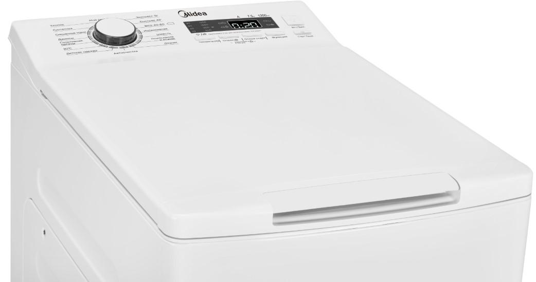 Стиральная машина Мидеа MFE12W75B/W-RU выпущена в стандартной конфигурации — устанавливается отдельно, поэтому рекомендуем заранее выделить для нее место в квартире. Благодаря вертикальной загрузке она более компактная, чем классические модели, дополнительный плюс — не нужно постоянно нагибаться, чтобы загрузить и достать белье. Вместительность барабана средняя, поэтому ее хватит и для одиночек, и для семей с детьми. Максимальная загрузка: 7 кг.