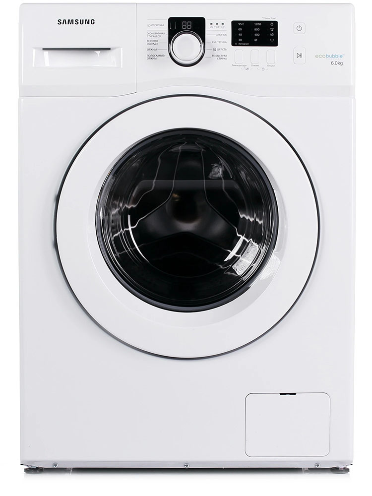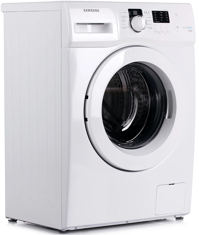 Стиральная машина Самсунг WF 60 F1R0E2W/DLP выпущена в стандартной конфигурации — устанавливается отдельно, поэтому рекомендуем заранее выделить для нее место в квартире. Благодаря классической фронтальной загрузке она привычна и удобна даже для тех, кто не очень разбирается в технике. За счет небольшой глубины данную модель предпочитают владельцы небольших квартир, студий. В барабан помещается не так много вещей за один раз, но тем, кто не любит копить вещи или просто мало стирает, будет достаточно. Максимальная загрузка: 6 кг.