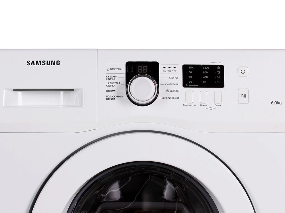 Стиральная машина Самсунг WF 60 F1R0F2W/DLP выпущена в стандартной конфигурации — устанавливается отдельно, поэтому рекомендуем заранее выделить для нее место в квартире. Благодаря классической фронтальной загрузке она привычна и удобна даже для тех, кто не очень разбирается в технике. За счет небольшой глубины данную модель предпочитают владельцы небольших квартир, студий. В барабан помещается не так много вещей за один раз, но тем, кто не любит копить вещи или просто мало стирает, будет достаточно. Максимальная загрузка: 6 кг.