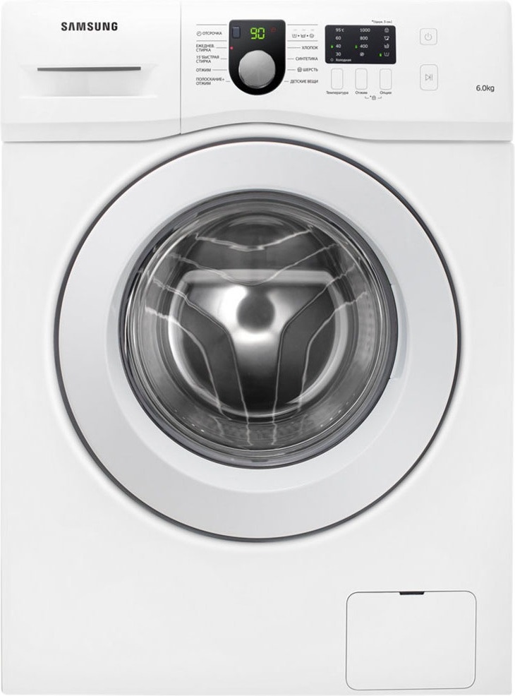 Цвет этой стиральной машинки — белый. В данной модели Samsung используется барабан Diamond.