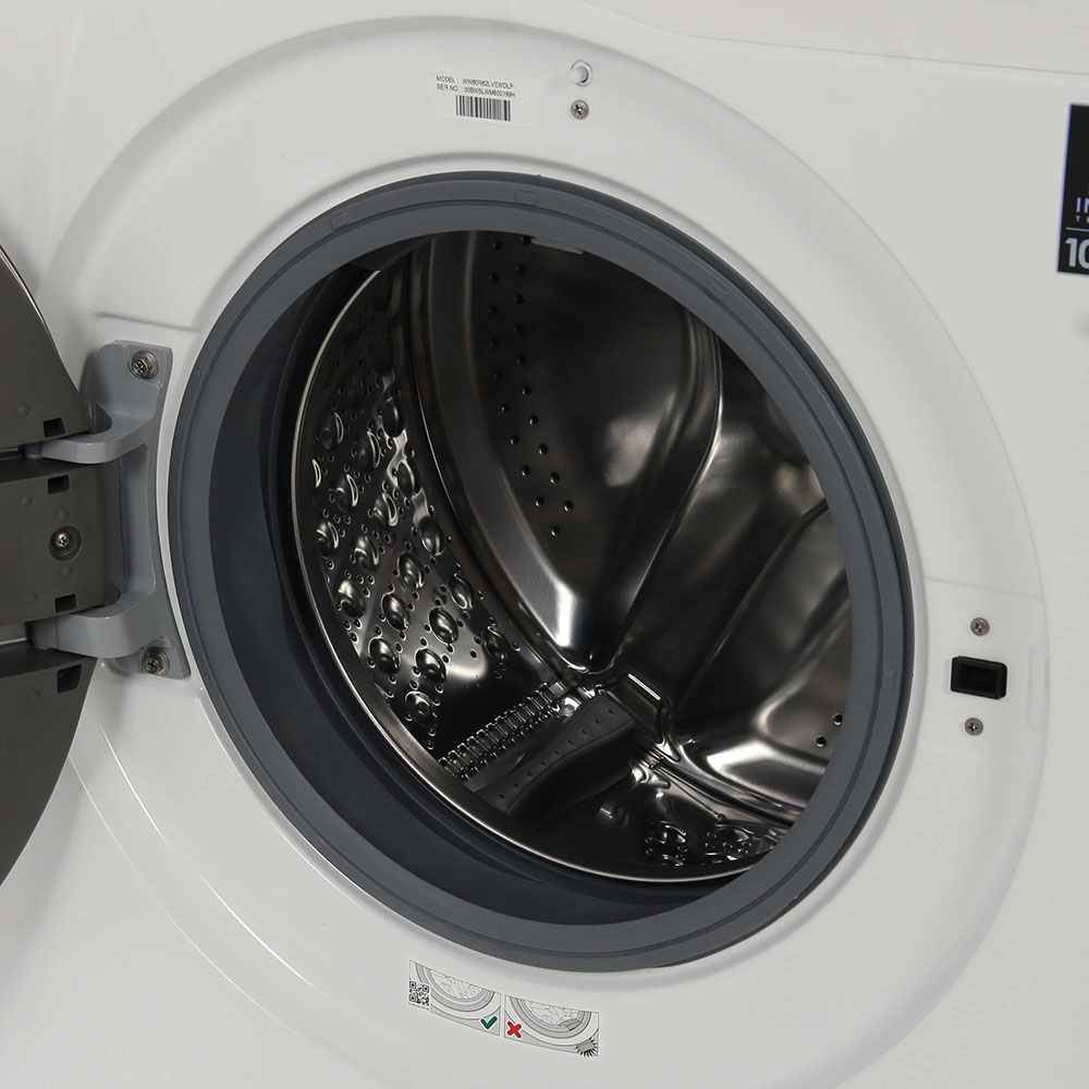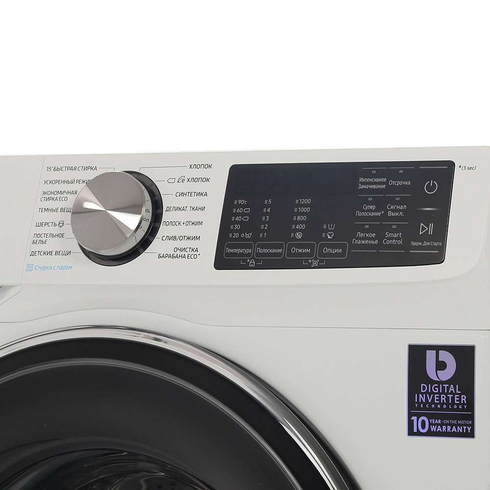 Цвет этой стиральной машинки — белый. Мотор: Инверторный. Благодаря ему машина работает тише, потребляет меньше электроэнергии, сохраняя при этом необходимую мощность.