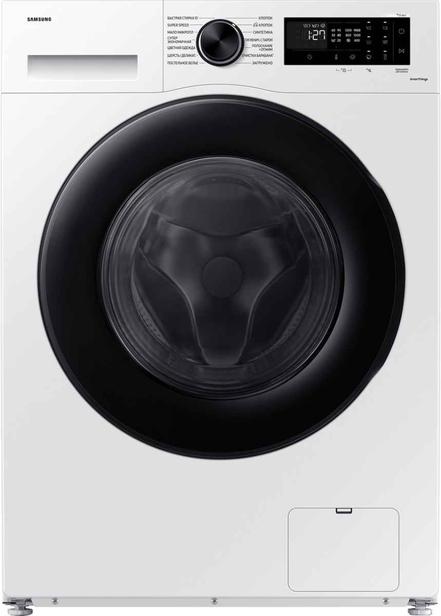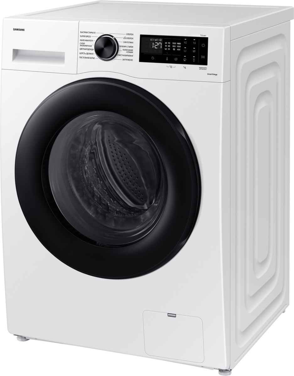 Стиральная машина Самсунг WW11CGC04CAELP выпущена в стандартной конфигурации — устанавливается отдельно, поэтому рекомендуем заранее выделить для нее место в квартире. Благодаря классической фронтальной загрузке она привычна и удобна даже для тех, кто не очень разбирается в технике. В барабан помещается большое количество белья, что подойдет большим семьям или тем, кто часто стирает объемные вещи — постельное белье, верхнюю одежду. Максимальная загрузка: 11 кг.