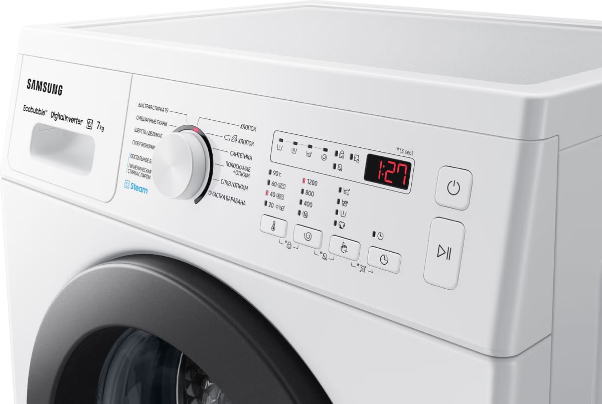 Электромеханическое управление удобно и понятно. Производитель внедрил интеллектуальную систему контроля, с помощью которой данная модель автоматически улучшает все рабочие процессы. В вашем распоряжении: Технология EcoBubble. Для выбора программ используются кнопки, поворотный программатор. Количество режимов для стирки разных типов белья: 12.