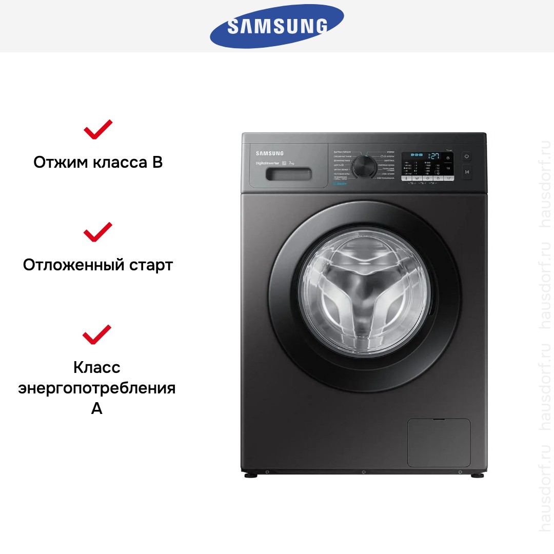 Стиральная машина Samsung WW70AG5S20CXLP — стильный прибор в глубоких черных тонах, который гармонично впишется в современную кухню или прачечную. Компактные габариты 85×60×45 см экономят пространство, а диаметр загрузочного люка 30 см и лаконичный черный люк создают элегантный внешний вид. Нержавеющая сталь барабана и особая форма Diamond обеспечивают деликатный уход за тканями, снижая износ и продлевая срок службы вещей.