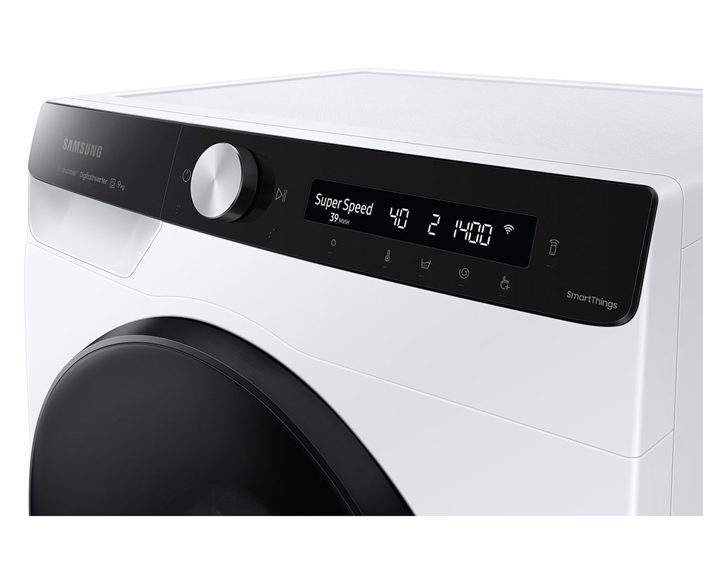 Стиральная машина Самсунг WW90A6L48BE выпущена в стандартной конфигурации — устанавливается отдельно, поэтому рекомендуем заранее выделить для нее место в квартире. Благодаря классической фронтальной загрузке она привычна и удобна даже для тех, кто не очень разбирается в технике. За счет небольшой глубины данную модель предпочитают владельцы небольших квартир, студий. Вместительность барабана средняя, поэтому ее хватит и для одиночек, и для семей с детьми. Максимальная загрузка: 9 кг.