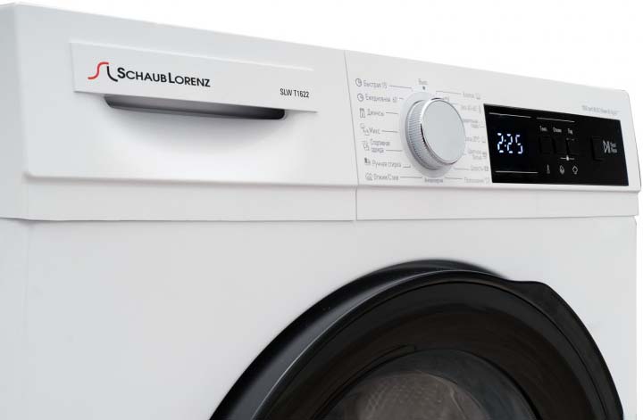 Стиральная машина Шауб Лоренц SLW T1622 выпущена в стандартной конфигурации — устанавливается отдельно, поэтому рекомендуем заранее выделить для нее место в квартире. Благодаря классической фронтальной загрузке она привычна и удобна даже для тех, кто не очень разбирается в технике. За счет небольшой глубины данную модель предпочитают владельцы небольших квартир, студий. В барабан помещается не так много вещей за один раз, но тем, кто не любит копить вещи или просто мало стирает, будет достаточно. Максимальная загрузка: 6 кг.