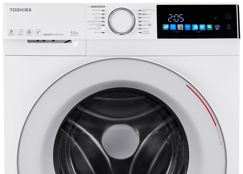 Стиральная машина Toshiba TW-BN90C4RU(WK) оснащена 15 программами стирки, что позволяет подобрать индивидуальный подход к каждому изделию — от деликатных шелковых блуз до плотных джинсовых тканей или детской одежды.