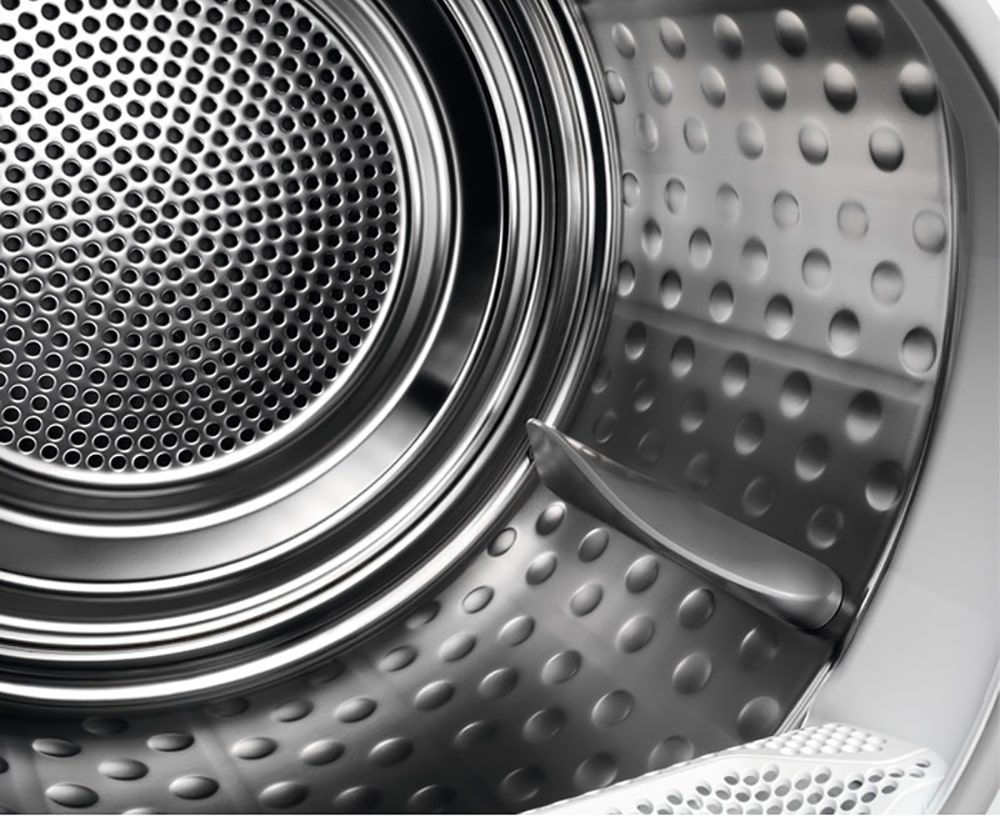 Барабан вращается попеременно в разные стороны, чтобы белье не сбивалось в ком и эффективно просушивалось со всех стороны.