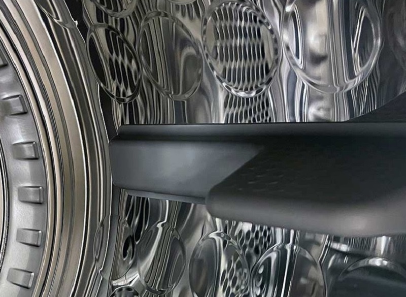 В барабан единовременно можно загрузить 9 кг. Его реверсивное вращение предотвращает сбивание вещей в ком и образование дисбаланса. Подсветка — не только красивая, но и функциональная деталь, так как дает хороший обзор, как проходит сушка. Другие особенности барабана: барабан Soft Drum. Цвет корпуса — графит.