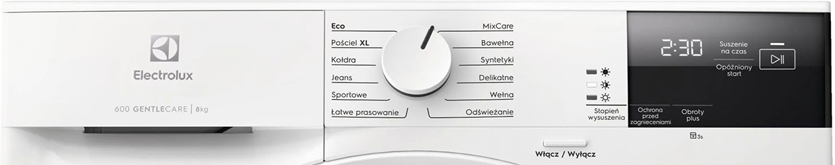 Электронное управление удобно и понятно для людей разного поколения. Контролировать процесс можно с помощью дисплея, на который выводится основная информация. В вашем распоряжении индикаторы: хода программы/этапа сушки/времени выполнения цикла, времени до окончания программы, заполнения емкости для конденсата/необходимости опорожнения резервуара, продолжительности фазы «антисминание», фильтр/проблема со сливом. Вы можете использовать таймер, чтобы отложить запуск на подходящее время. Когда машинка прекратит работу, вы услышите специальный сигнал. Другие полезные опции, которые помогут вам: функция GentleCare.