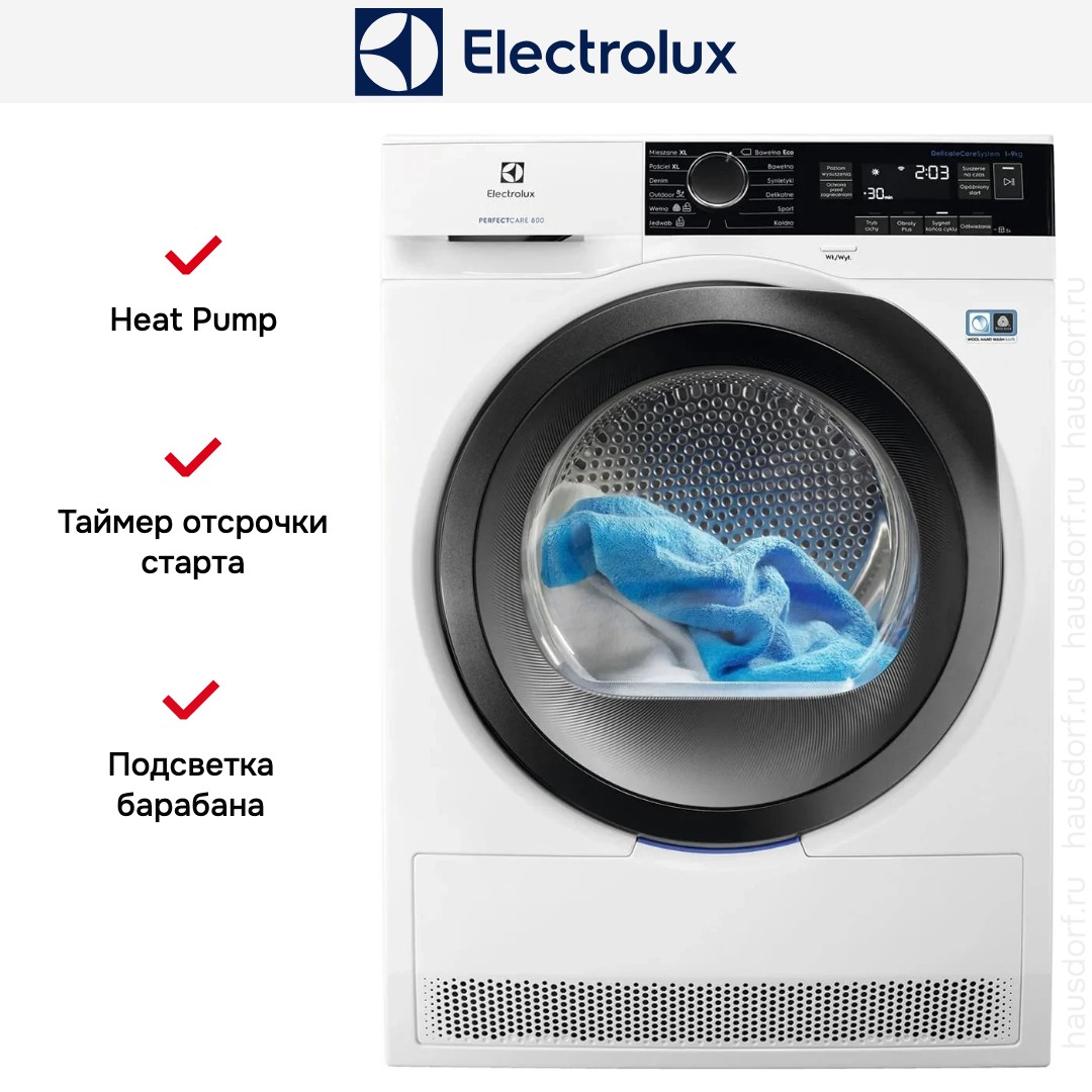 Сушильная машина Electrolux EW8H259ST создана для дома и сочетает в себе лаконичный внешний вид с продуманным набором опций, которые делают уход за вещами быстрым и бережным. Отдельностоящий прибор в белом корпусе с черной панелью и дверцей выглядит современно и уместно в любой комнате, габариты 85×59.6×63.8—66.5 см позволяют разместить устройство как в нише, так и отдельно. Высота 85 см и стандартная ширина упрощают интеграцию, а регулировка ножек помогает выровнять положение на даже неровном покрытии.