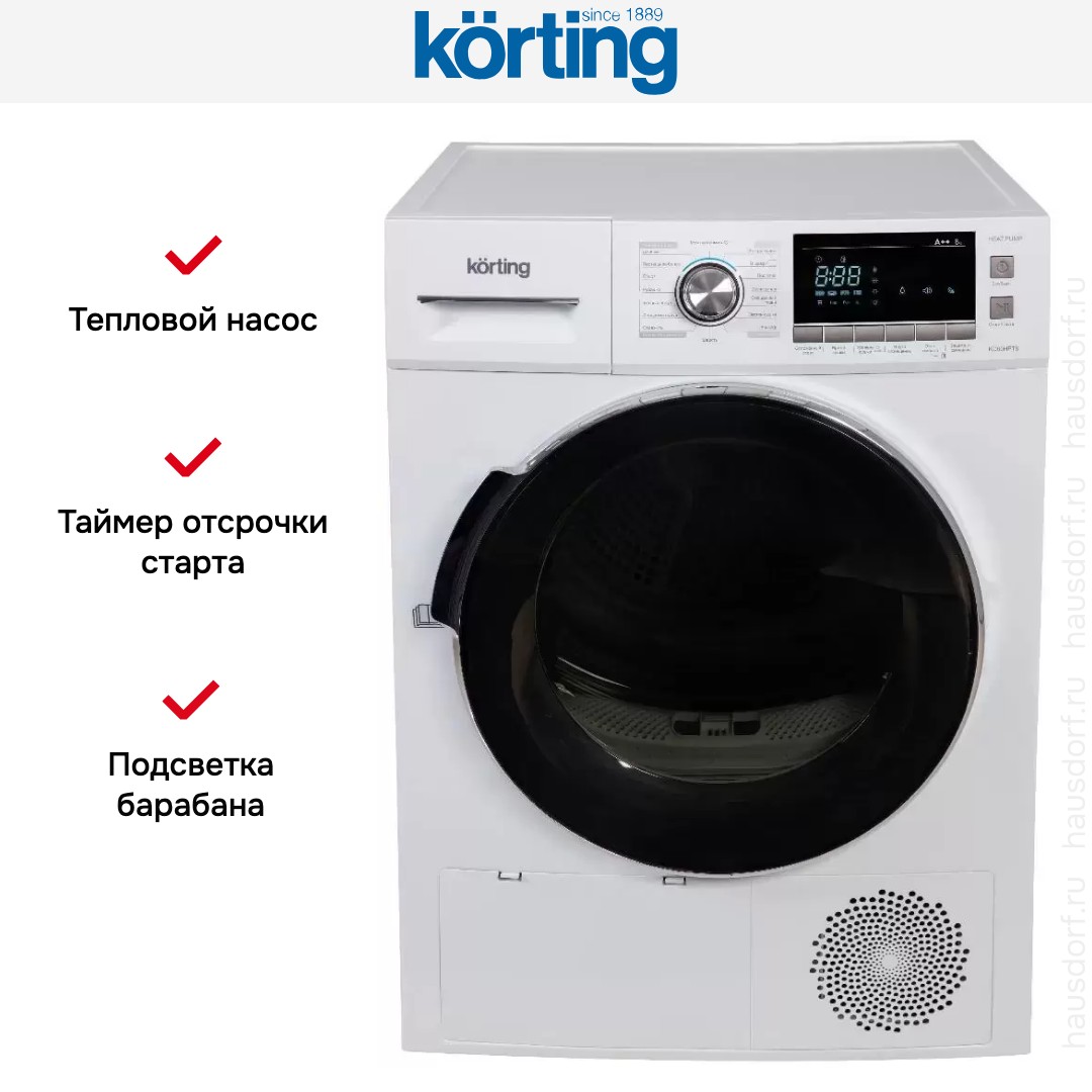 Сушильная машина Korting KD 60HPT8 представляет собой идеальное решение для современного дома. Это отдельностоящее устройство с возможностью установки в колонну, что позволяет сэкономить пространство в вашей прачечной. Стильный и функциональный дизайн с белым корпусом и черной дверцей люка придают этой модели элегантный и современный вид.