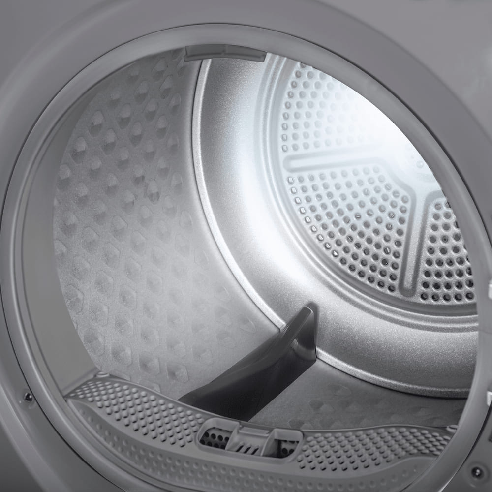 Уровень остаточной влажности определяется с помощью датчиков. Благодаря этому машина корректно сушит полотенца, пуховики, деликатные ткани и экономит электроэнергию.